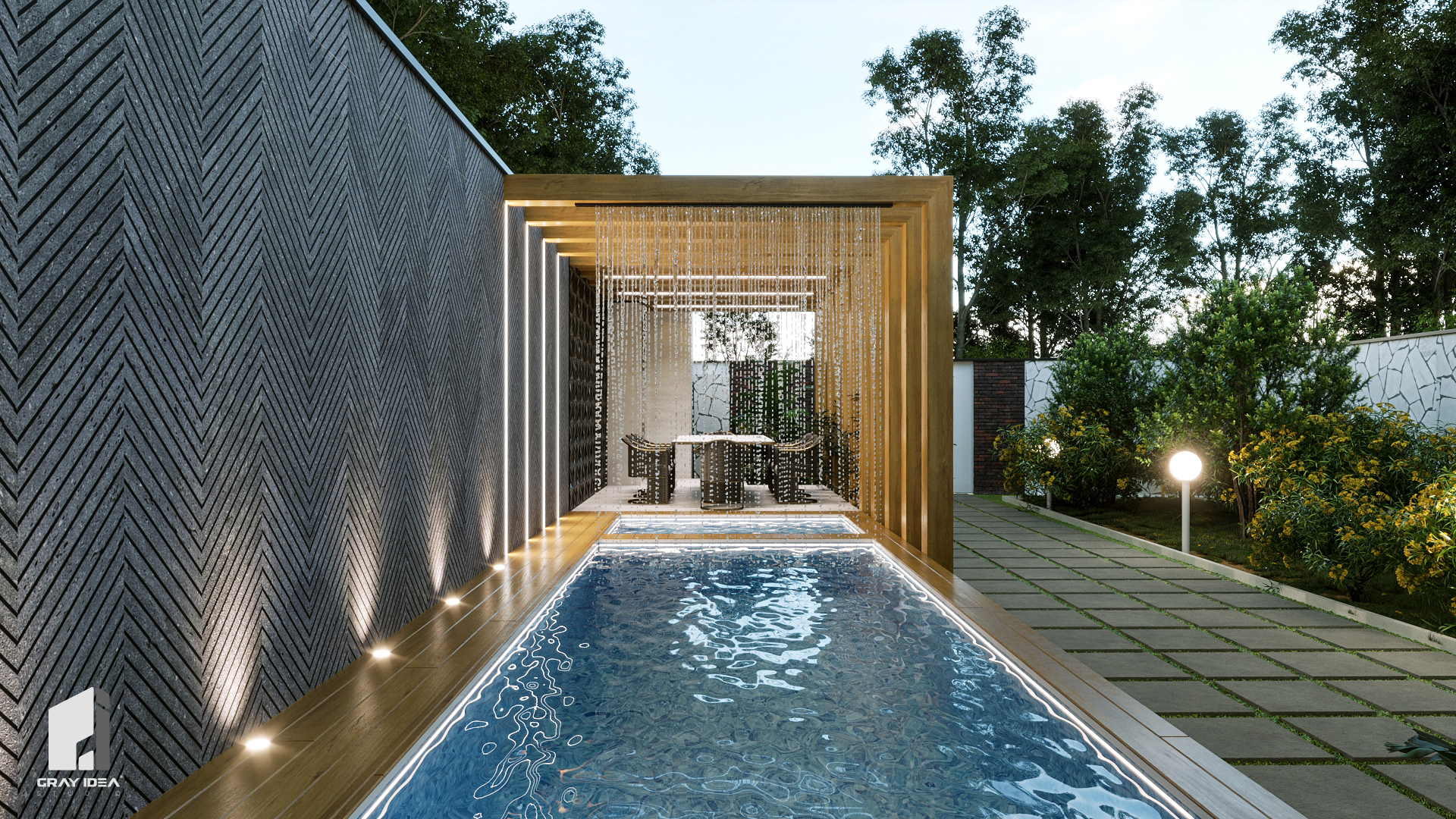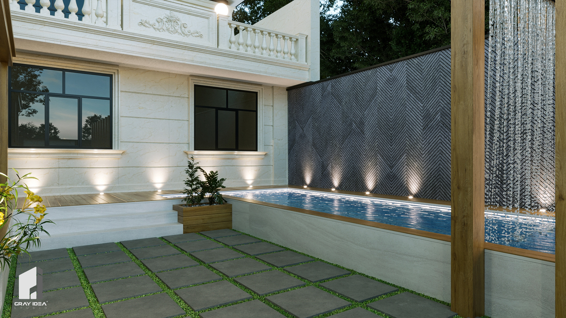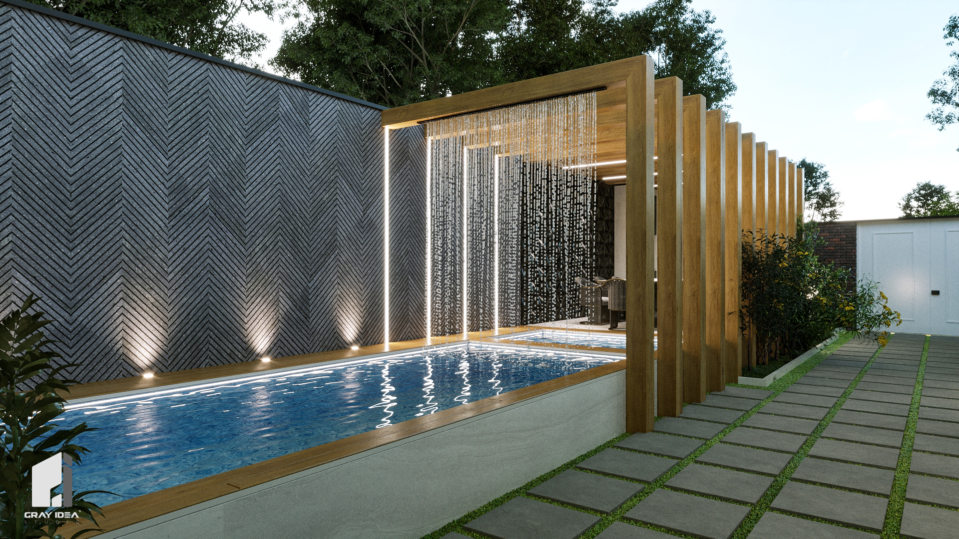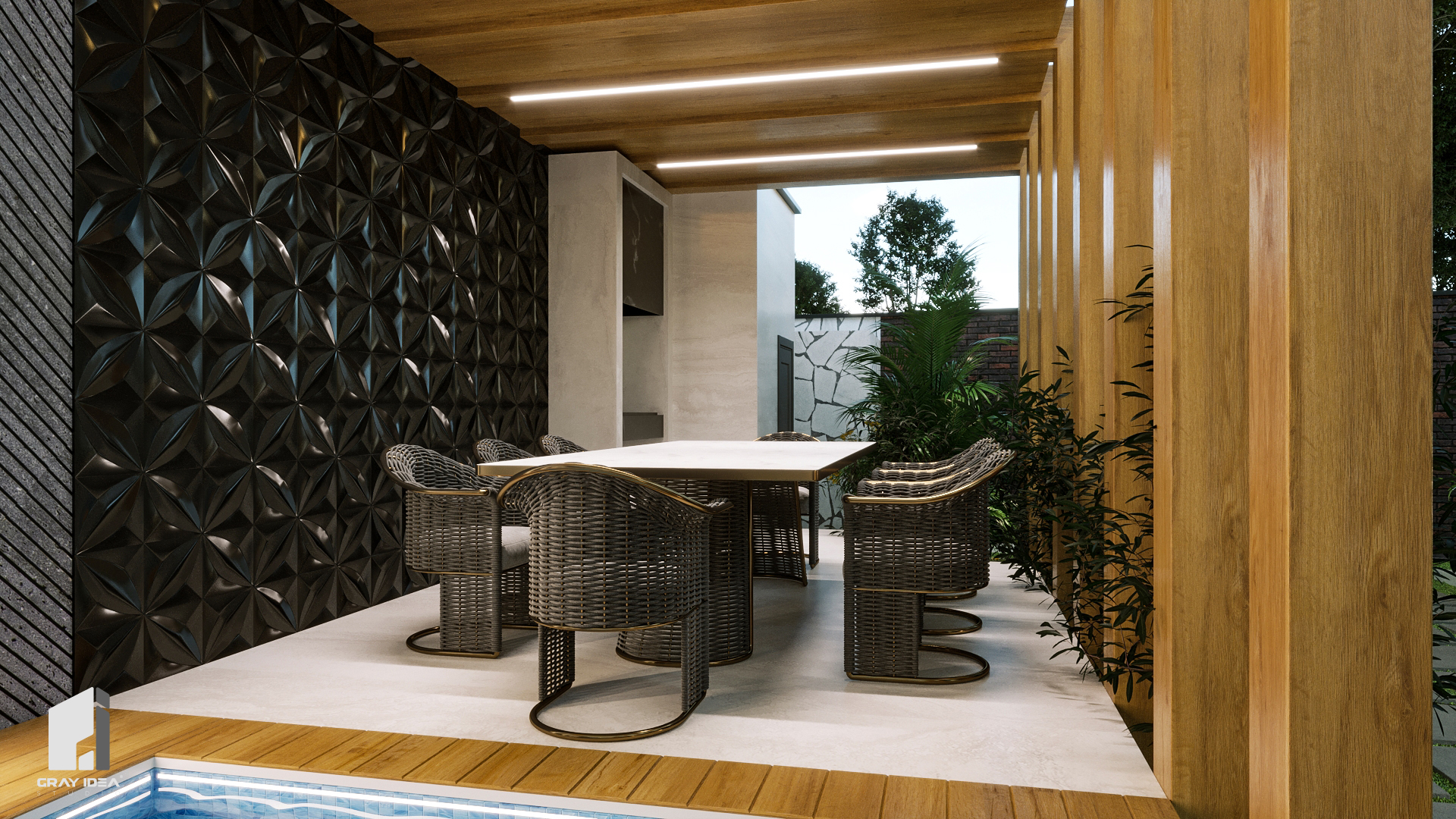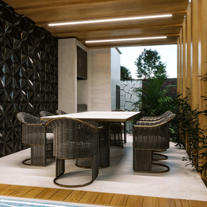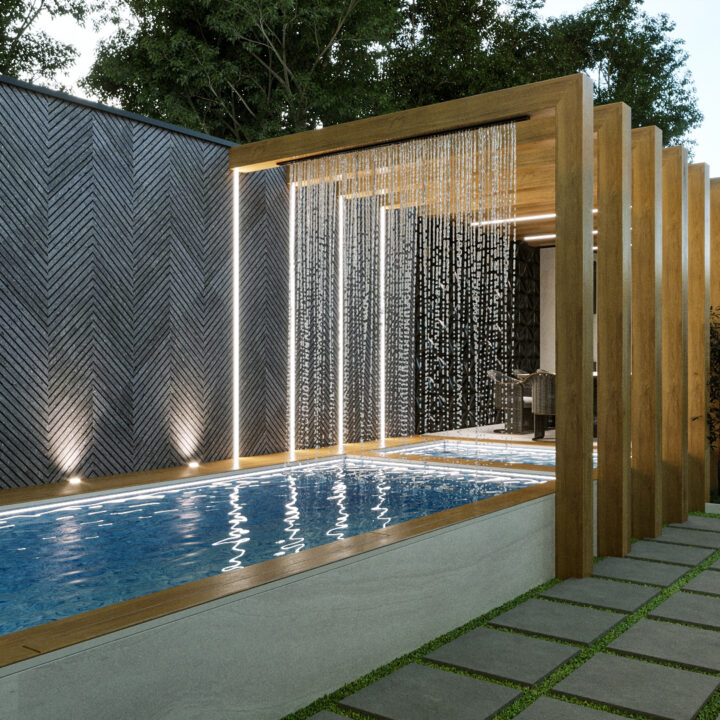 در پی درخواستهای کارفرما، طراحی مجموعه با هدف ایجاد فضایی پویا، کاربردی و سرشار از تعامل بازتعریف شد. در این راستا، محوطهای طراحی گردید که ضمن تأمین نیازهای خانوادگی، امکان استفاده از استخری مدرن و فضایی آلاچیقمانند برای گردهمایی و تجربهای متفاوت از آرامش و صمیمیت را فراهم کند. از جمله تغییرات اصلی پروژه میتوان به بازطراحی نمای ساختمان، بازآفرینی استخر، و جانمایی آلاچیق به همراه شومینهای مرکزی در فضای باز اشاره کرد؛ عناصری که در کنار یکدیگر، هویتی تازه و منسجم به این ملک بخشیدند.
