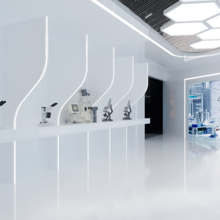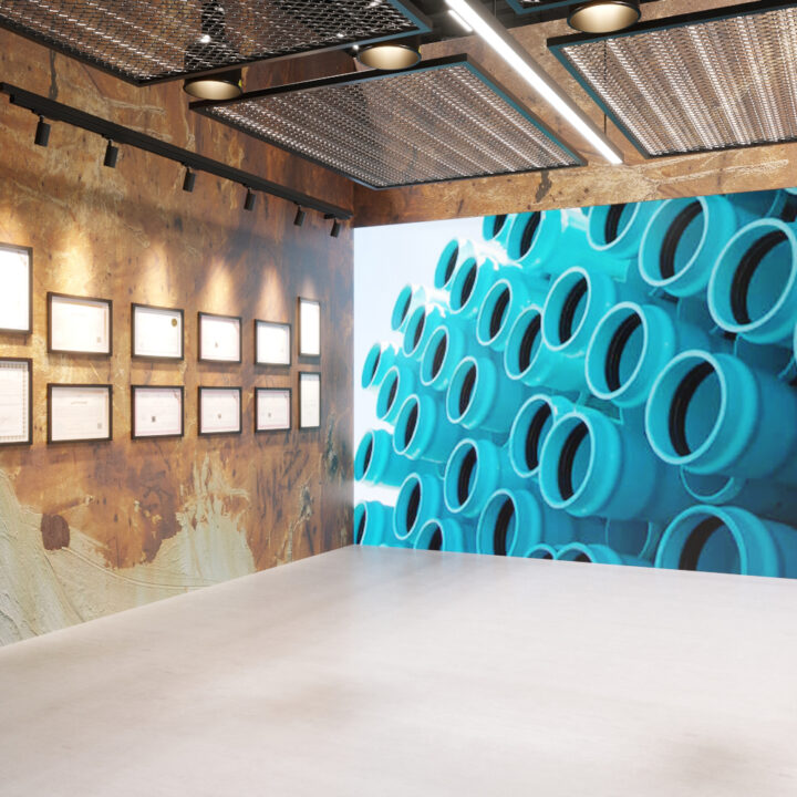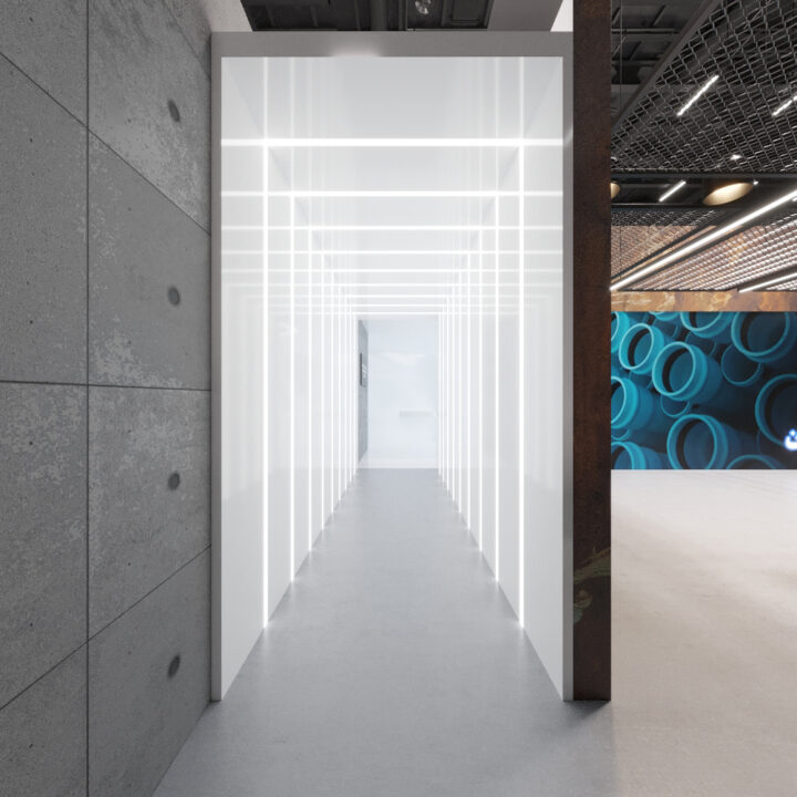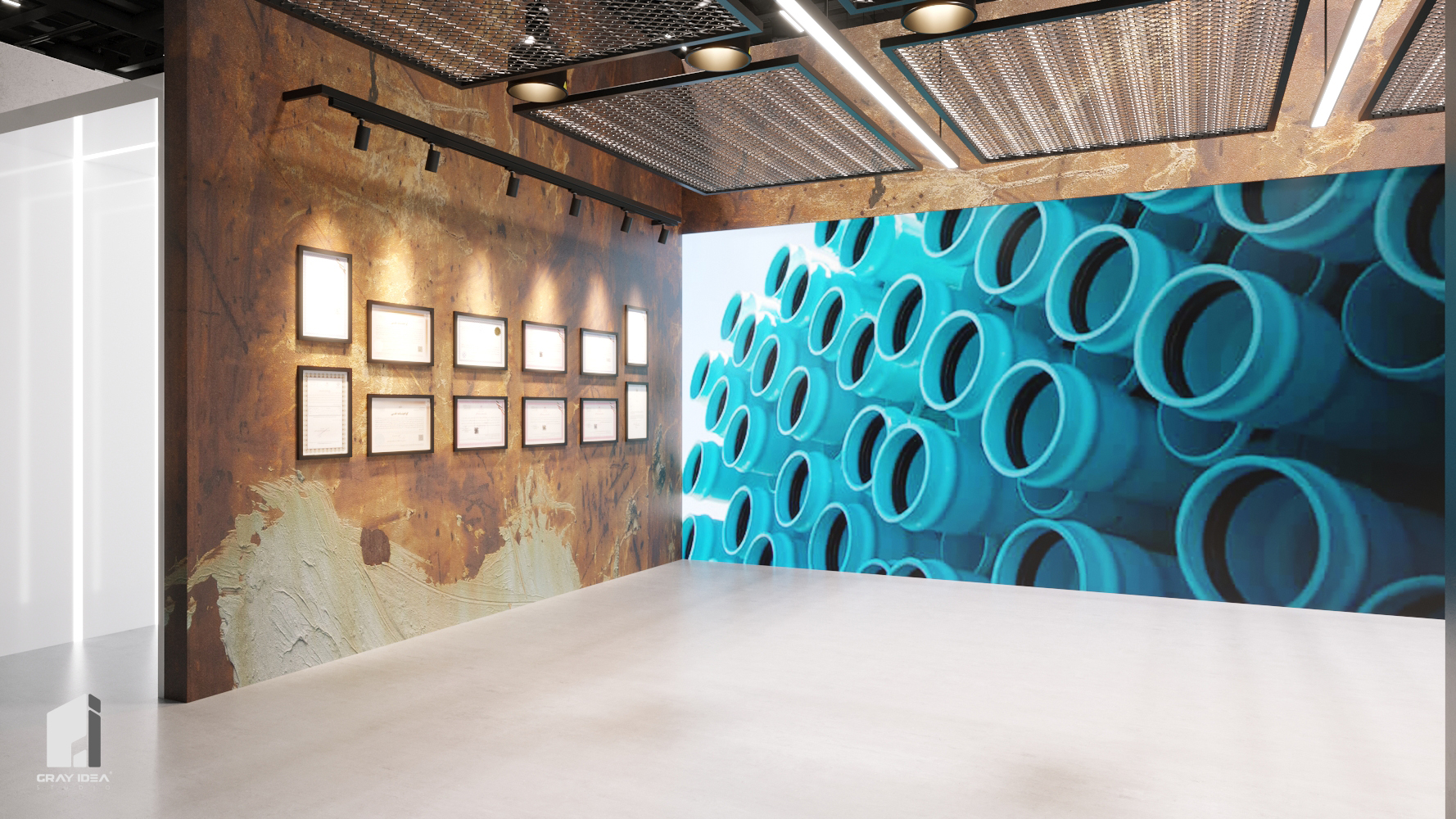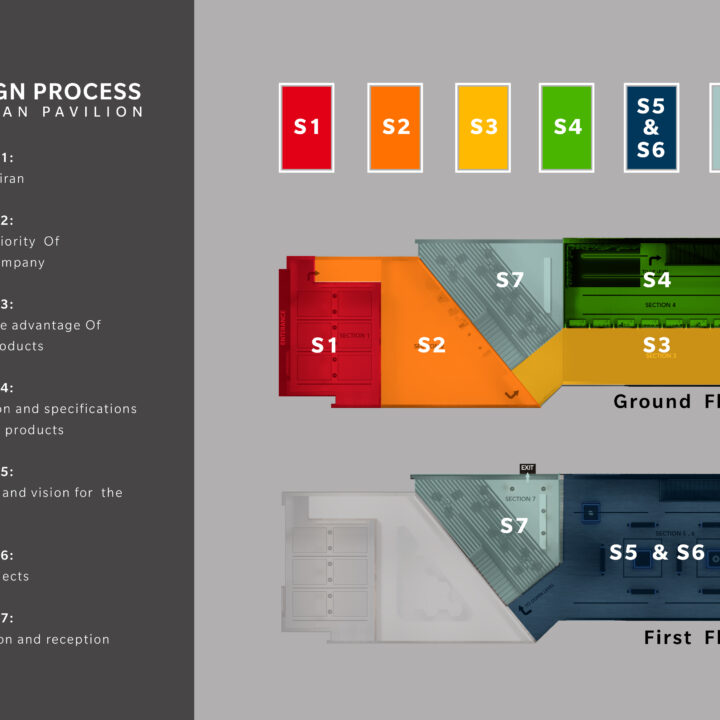 در فرآیند طراحی، روایت مدنظر کارفرما — از آغاز فعالیت شرکت تا توسعهی محصولات متنوع — به عنوان محور اصلی کانسپت در نظر گرفته شد.