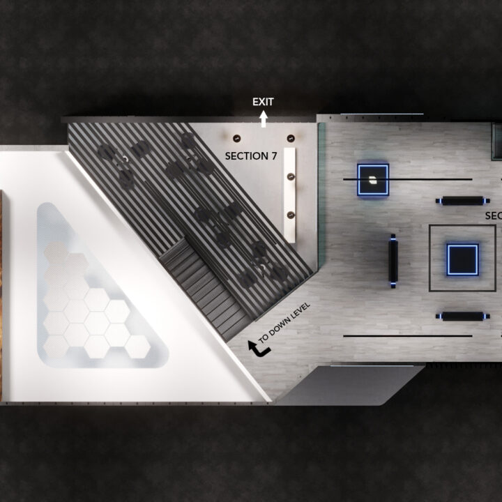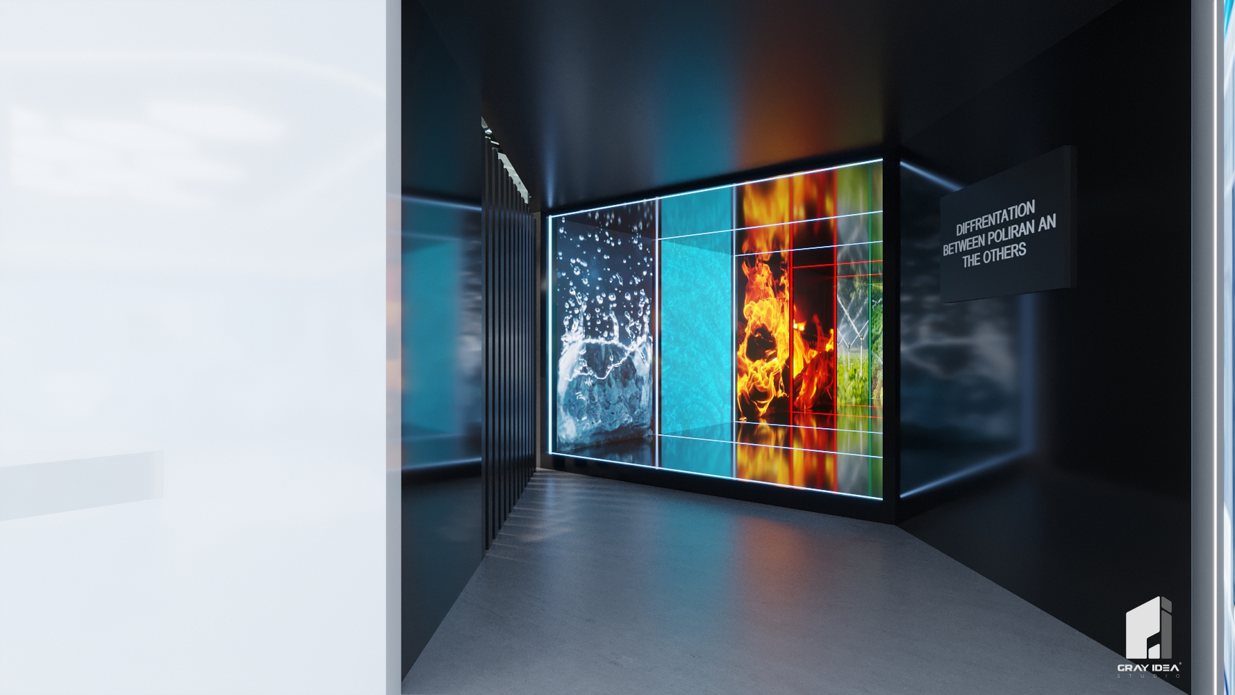 غرفه بهصورت یکطرفه و با ورودی و خروجی مجزا طراحی گردید تا بازدیدکننده در جریان بازدید خود، به شکلی تدریجی و تجربهمحور با تاریخچه، محصولات و دستاوردهای تیم پلیران آشنا شود.