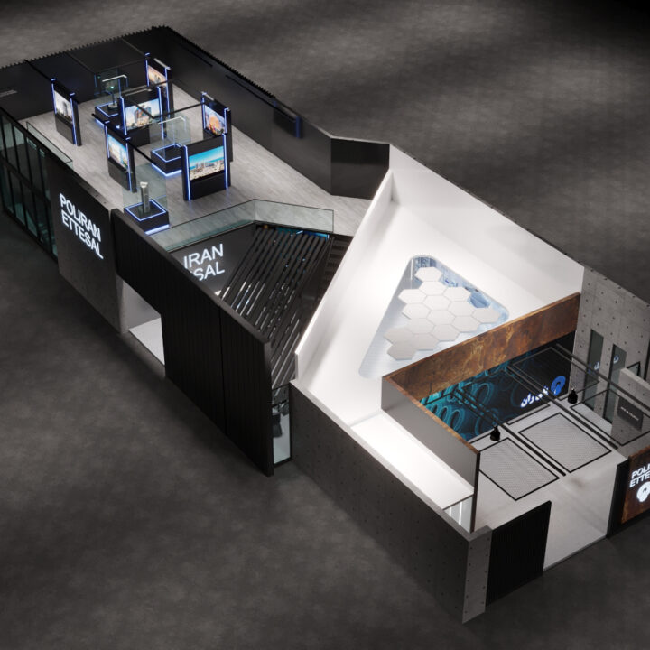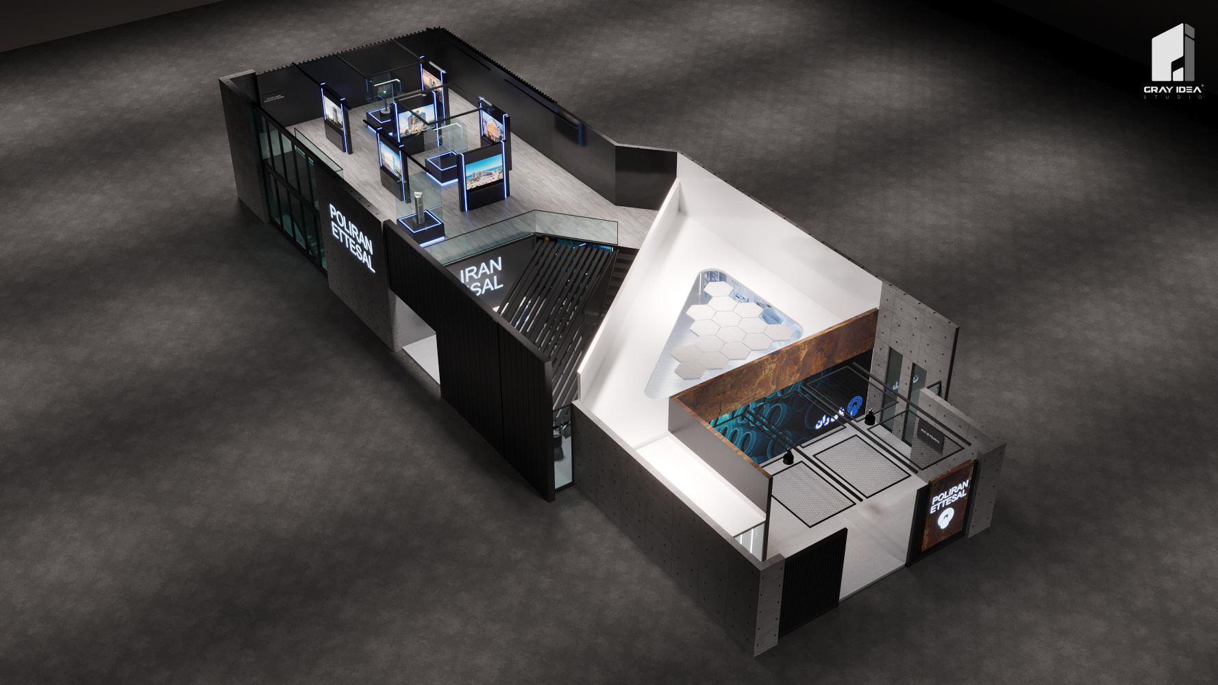 طراحی غرفهی نمایشگاهی شرکت پلیران با همکاری تیم وابسته، در فضایی به مساحت تقریبی ۵۰۰ متر مربع و در دو طبقه انجام شد.