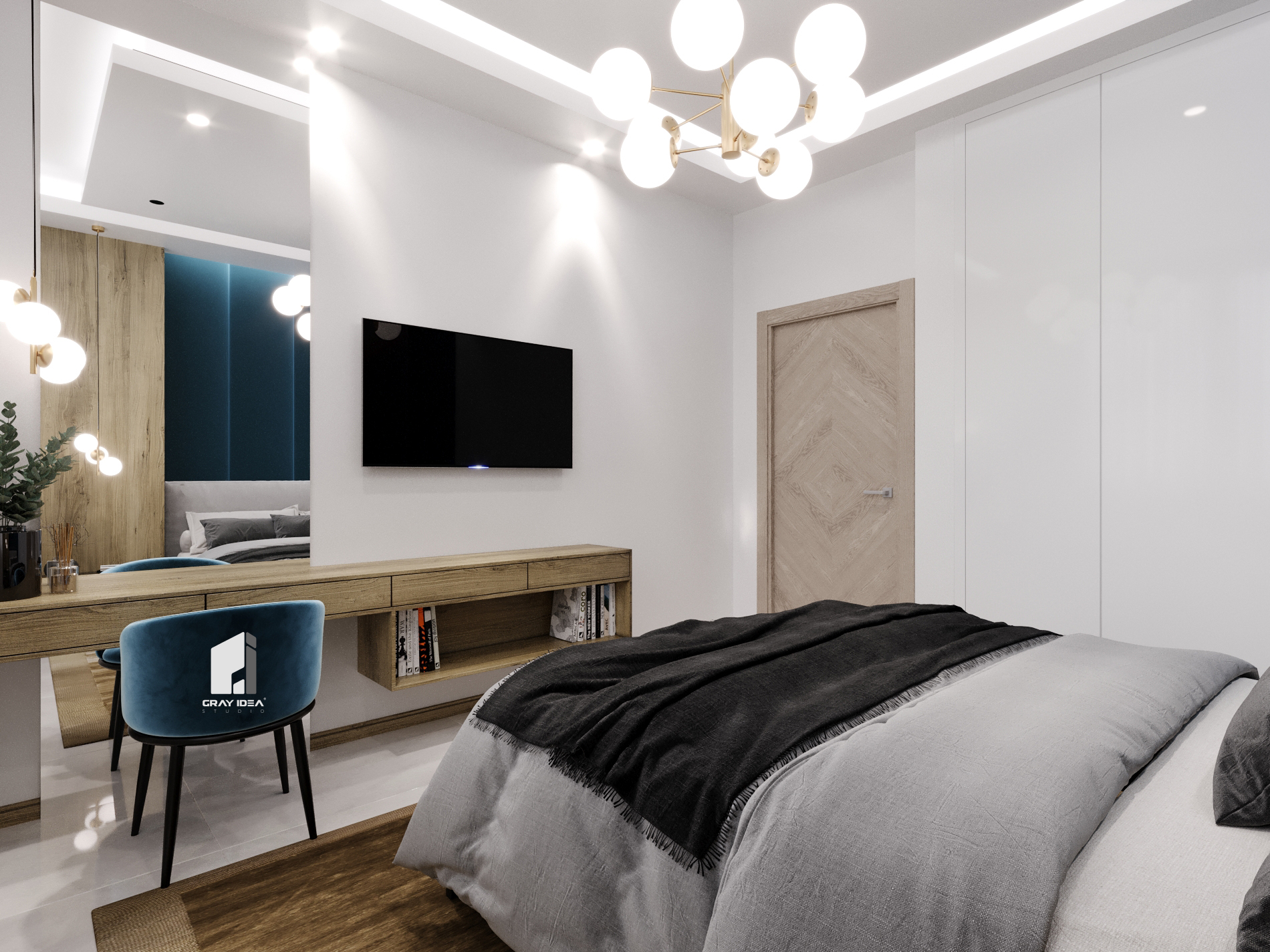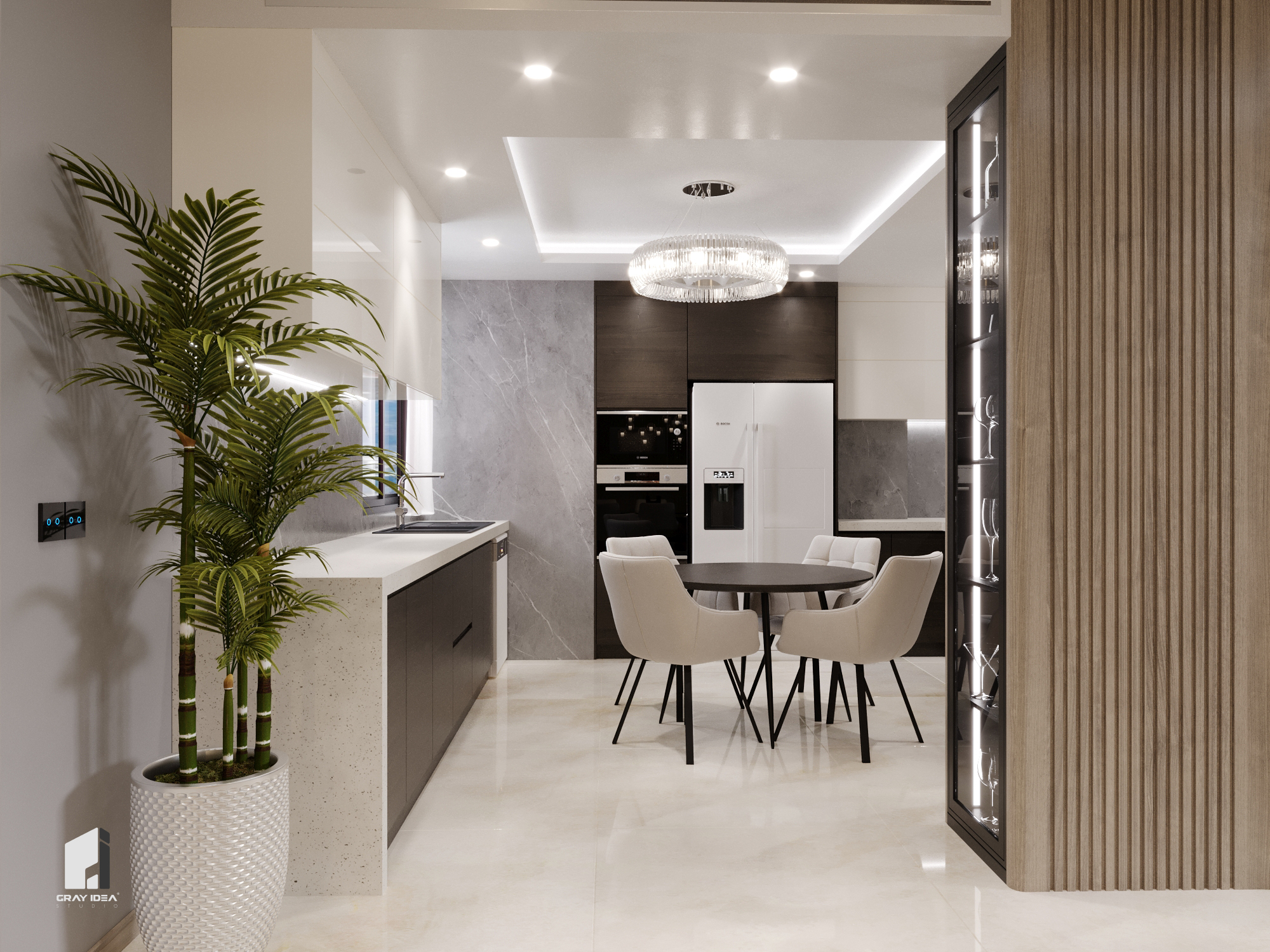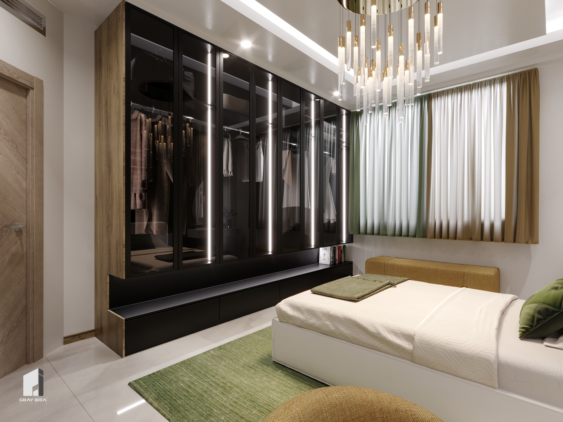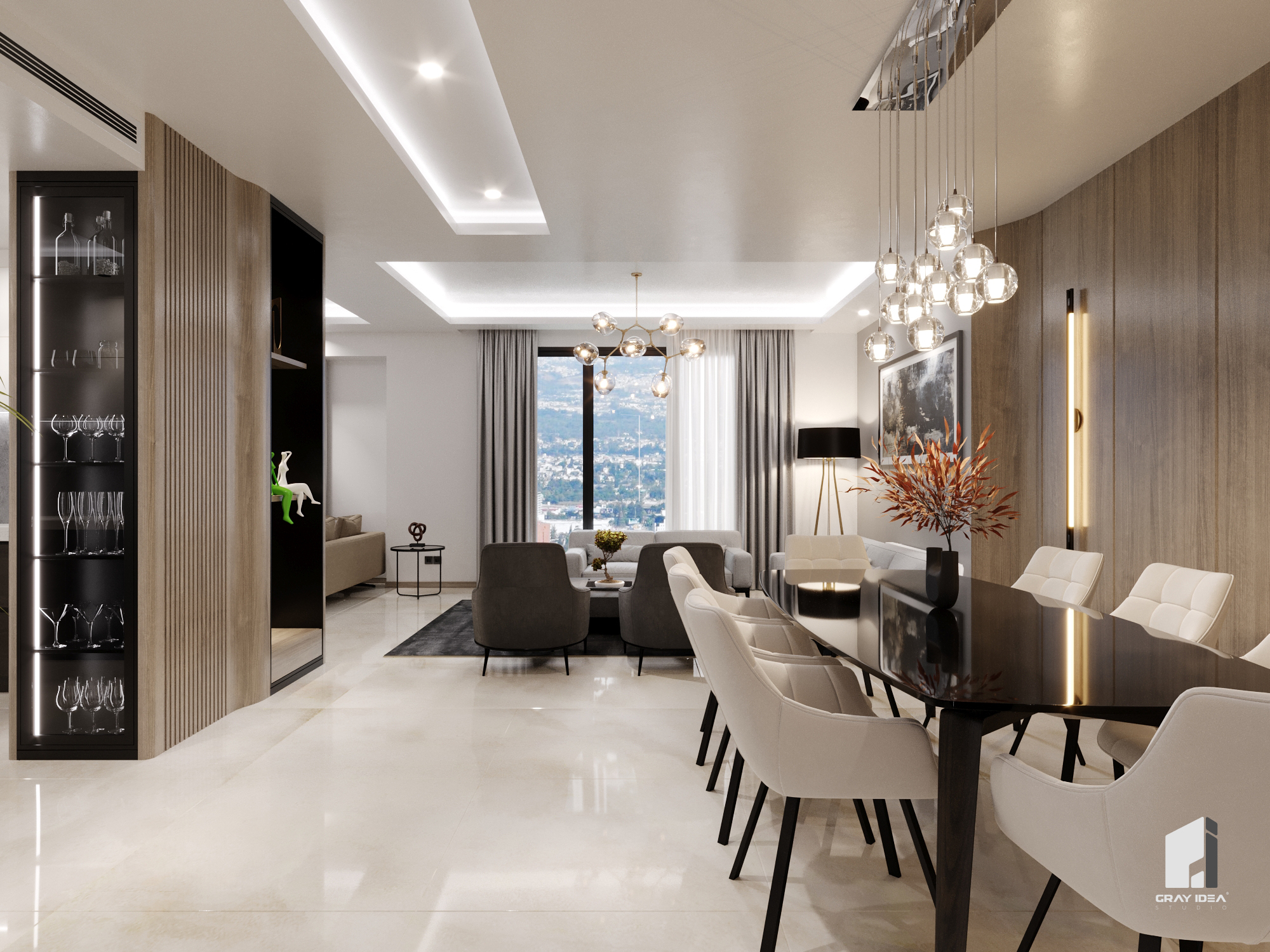 در این پروژه، یک واحد ۱۵۵ مترمربعی سهخوابه با رویکردی مدرن طراحی شد که طی آن، با تبدیل پلان به دوخوابه، فضای نشیمن گسترش یافت. استفاده از المانها، خطوط و متریالهای مدرن، در کنار رنگهای گرم و متعادل، فضایی دلنشین و صمیمی برای زندگی ایجاد کرده است. همچنین، در طراحی اتاق خوابها از ترکیب رنگها به گونهای بهره گرفته شد که فضایی آرامشبخش و مطلوب برای اعضای خانواده فراهم شود..