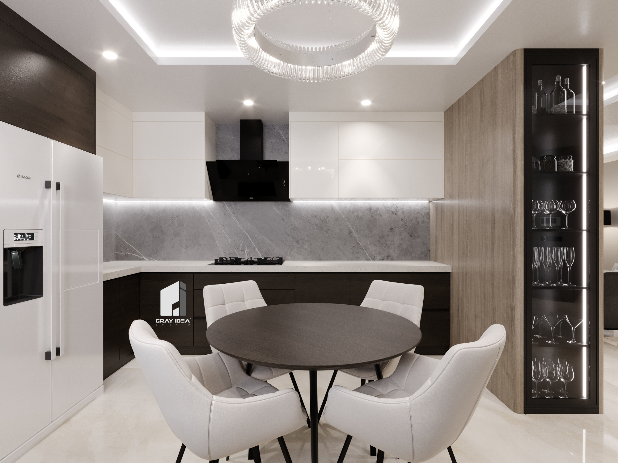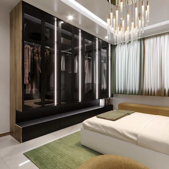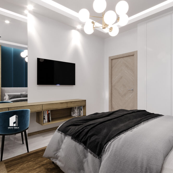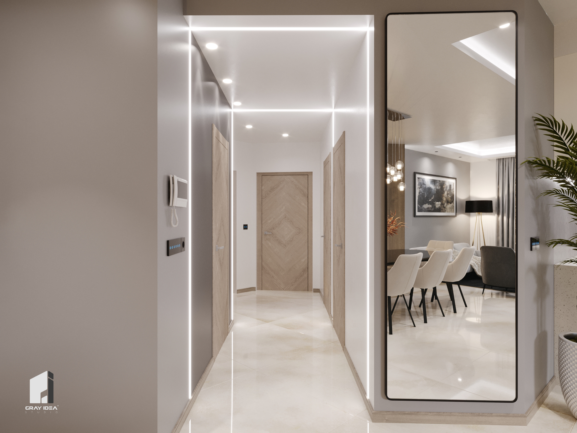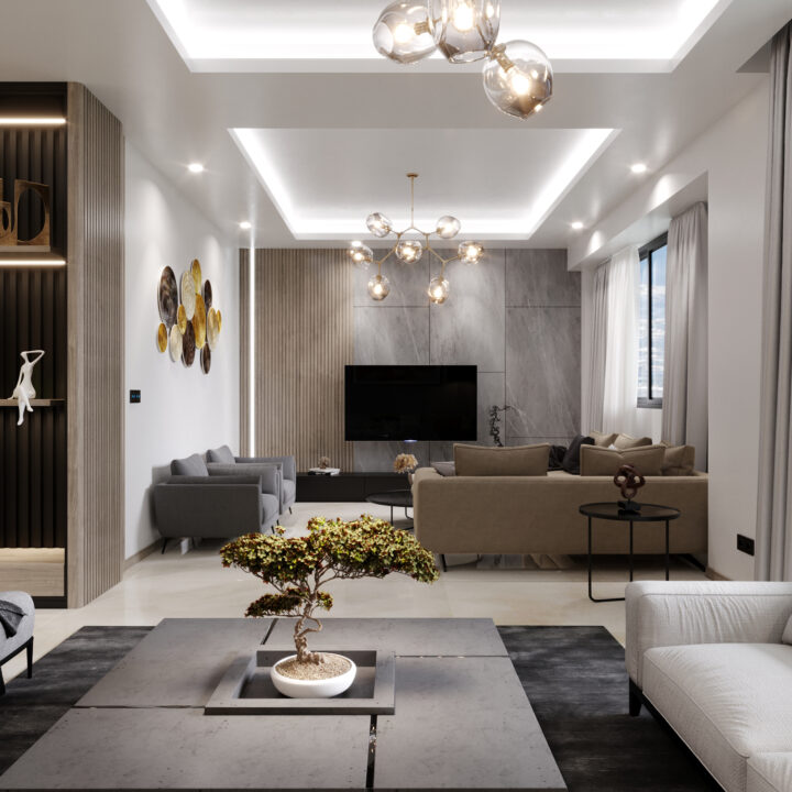 در این پروژه، یک واحد ۱۵۵ مترمربعی سهخوابه با رویکردی مدرن طراحی شد که طی آن، با تبدیل پلان به دوخوابه، فضای نشیمن گسترش یافت. استفاده از المانها، خطوط و متریالهای مدرن، در کنار رنگهای گرم و متعادل، فضایی دلنشین و صمیمی برای زندگی ایجاد کرده است. همچنین، در طراحی اتاق خوابها از ترکیب رنگها به گونهای بهره گرفته شد که فضایی آرامشبخش و مطلوب برای اعضای خانواده فراهم شود..