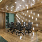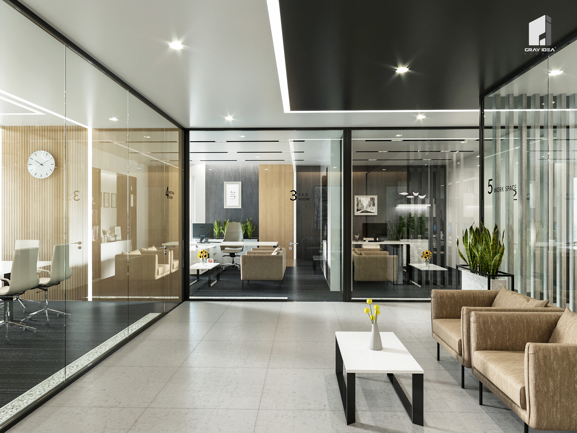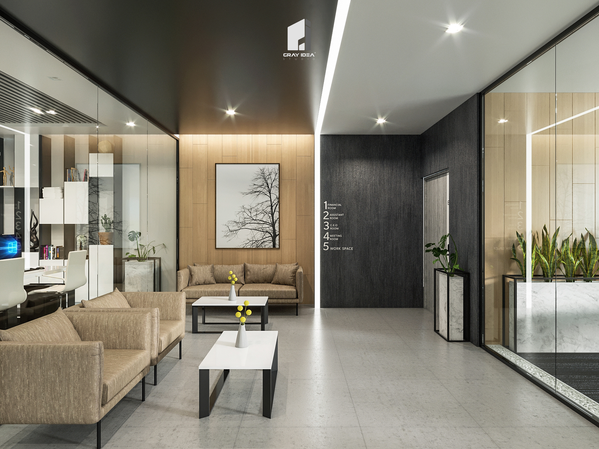 در طراحی دفتر اداری ریلند با مساحت 240 متر مربع، حداکثر بهرهگیری از نور طبیعی بهعنوان هدف اصلی در نظر گرفته شد. با توجه به قرارگیری نور جنوب در ضلع عرضی پلان، از شیشه و پارتیشنهای شفاف برای انتقال نور به عمق فضا استفاده شد. تفکیک اتاقها و بخشهای کاری با پارتیشنهای تمامشیشهای، در ترکیب با چوب و میکروسمنت، محیطی مدرن و پویا ایجاد کرده است. همچنین، ترکیب رنگهای خنثی و گرم، فضایی متعادل و حرفهای را برای کارفرما به ارمغان آورده است.